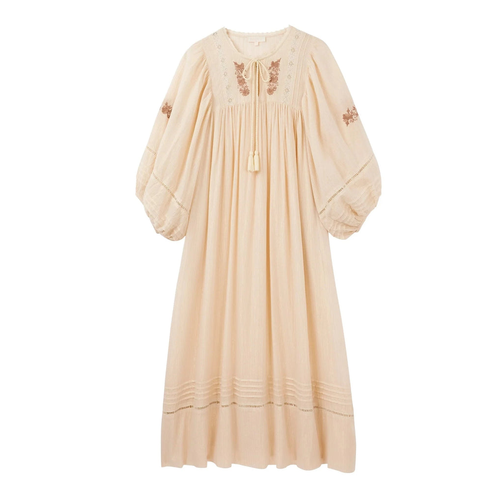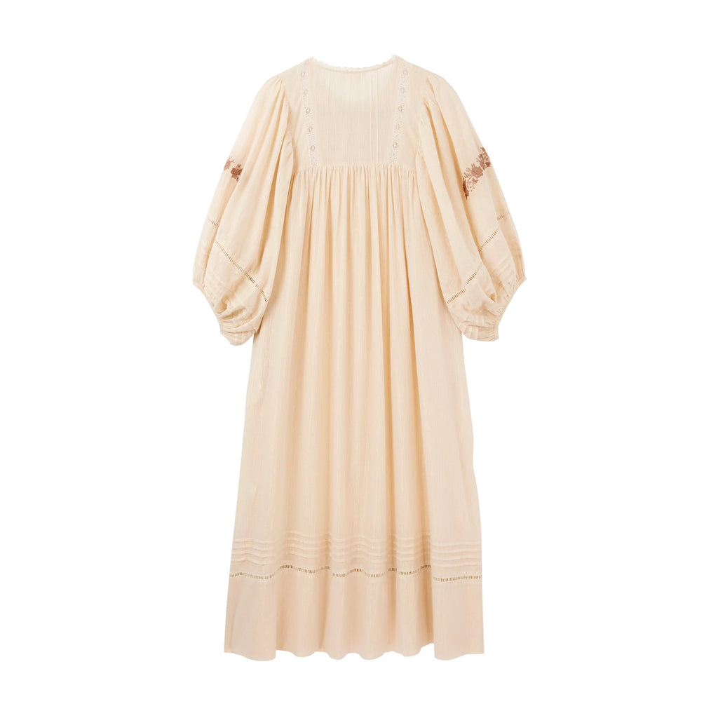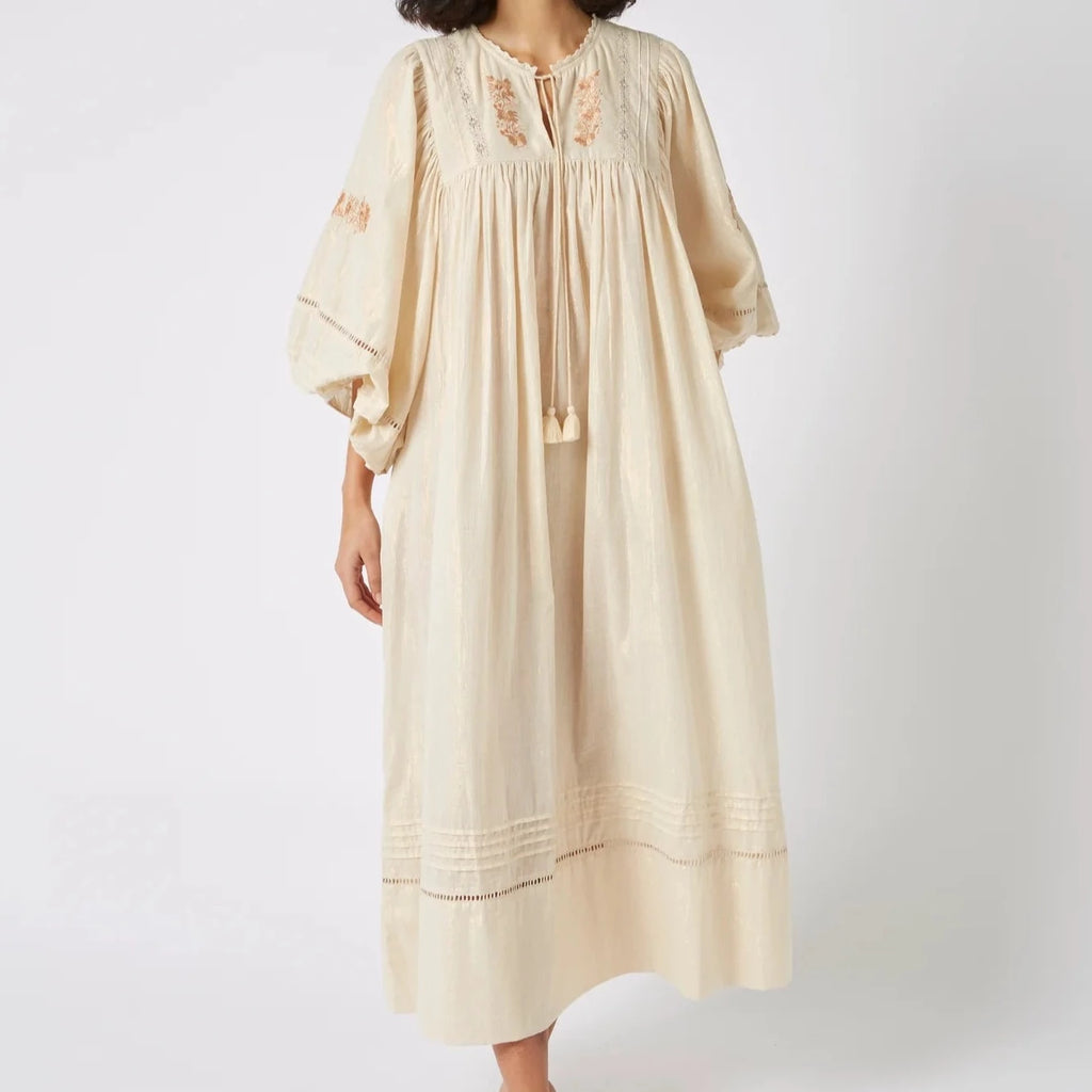 The many gathers give this dress amazing volume, making it a wonderfully comfortable style to relax and lounge in.