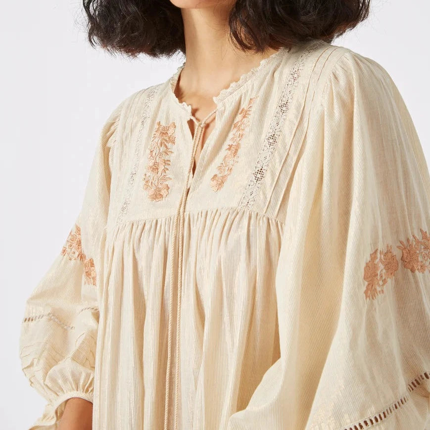 Faune's signature lace trims, embroidery and pin tucks add a delicate touch to this beautiful and timeless style.