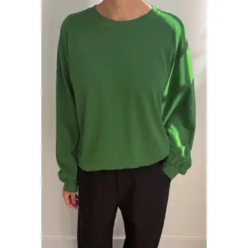 Why we made this: The Cali Jersey Sweatshirt blends the best of The Little Boy Tee and the Poche Top for a playful take on the classic crewneck. Crafted from 100% premium cotton jersey, it offers the lightweight feel of the Little Boy Tee, making it ideal for layering under jackets. It also borrows signature details from the Poche Top, like a ribbed crew neckline and relaxed balloon sleeves. Designed with a slightly oversized fit, it features a perfectly cropped length, creating the perfect balance of style Made in Los Angeles, USA Contents:100% COTTON PREMIUM JERSEY Care Instructions: Due to the nature of pigment dye, loose pigments may remain on the surface of the garments. - Do not spot clean - Washing these garments only with like colors and in cold water - Hang Dry Approximate Measurements: Small : Chest - 23”, Length - 22 1/2” Medium : Chest - 24” , Length - 23” Large : Chest - 25”, Length - 23 1/2" Model is 5' 6", 110 lbs and wearing a size small