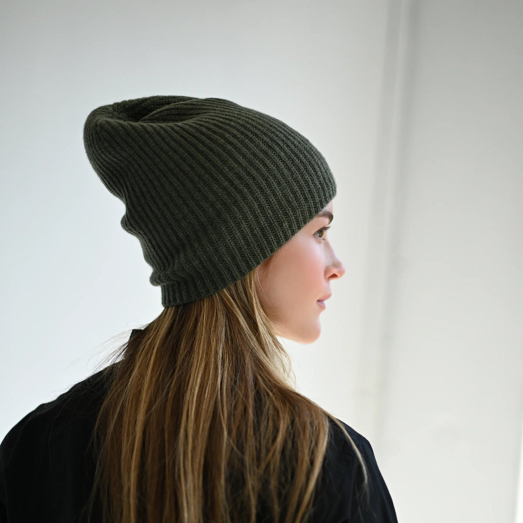 100% Cashmere Ribbed Knit Beanie.