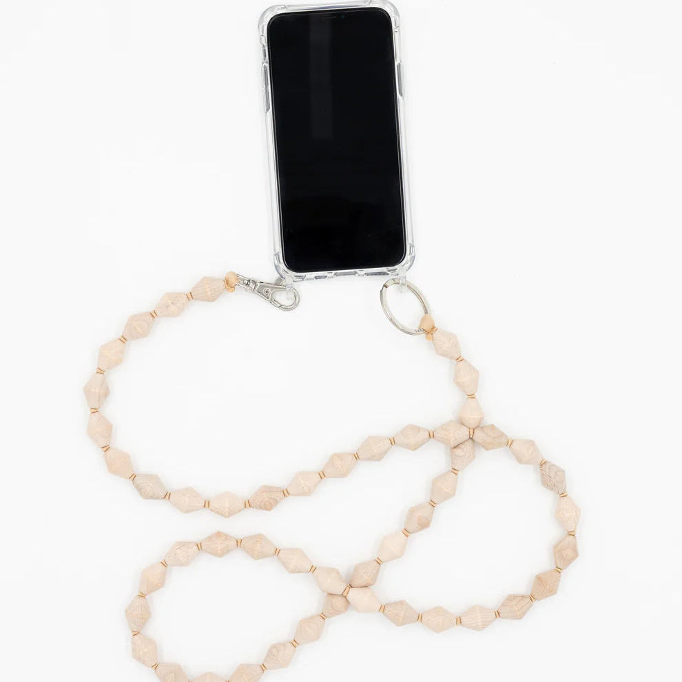 Keychain or Phone Case Holder (with adaptor) with elastic band and threaded wooden beads.