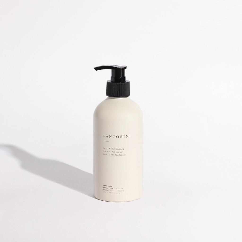 Our hand wash is an elevated everyday essential, fortified with certified organic ingredients such as jojoba, olive, and coconut oil as well as aloe vera and shea butter to nourish, soothe, and pamper your skin. Packaged in an infinitely recyclable and reusable aluminum bottle. Phthalate, sulfate-free, paraben-free. Santorini scent: Reminiscent of the earthy fruity aromas of Santorini’s abundant fig trees and lush native currants. Woodsy notes of sandalwood and amber form a rich, warm base.