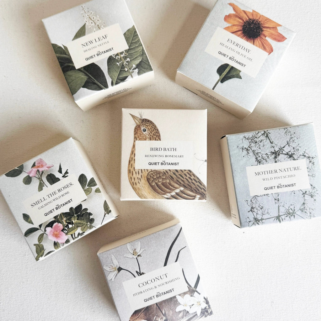Our new limited edition bar - New Leaf features Nettle which grows in abundance in Upstate New York! This handmade Nettle bar uses natural ingredients to help clear up skin irritation and redness, while moisturizing your skin. The nettle oil has been known to include anti-aging properties. Use this bar for both skin and hair care, a very handy bar to have around! Our soaps are made by hand in small portions by cold process and with the very best ingredients. Each bar is branded with our logo. Additionally each bar comes in it's own cotton muslin drawstring bag - to save on packaging waste and to keep if traveling with your bar! 4oz Saponified oils of Olive, Coconut, Sunflower and Castor. Shea Butter and essential oils. Our bars are free of toxins and are palm oil free. Handmade. Packaged in recycled card boxes with botanical prints.
