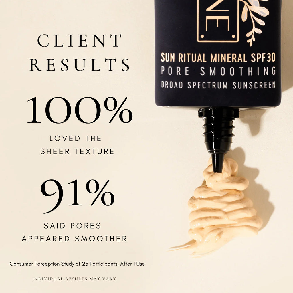 “It feels like skincare, not sunscreen. My pores look smaller, my skin feels fresh and balanced, and my makeup goes on flawlessly.” — Verified Client Review