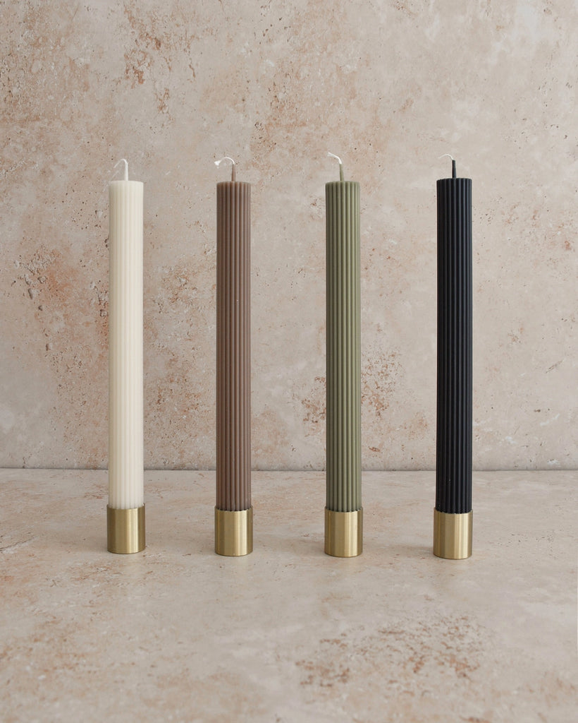 Sunday Edition's Roman Taper Candles are formulated with essential oils, natural aromatics or plant derived scent molecules. We use a custom blend of soy-beeswax and premium cotton wicks that contain no additives or chemicals for a clean burn. Our candle colors are made from vegetable dyes and contain no hazardous solvents or toxins. Packaging is made with sustainable and biodegradable materials. • Set of two • Soy-beeswax blend • Vegetable dye • Cotton wick • Length: 10" • Weight (each): 4.5oz | 255g • Est. burn time: 5 - 8 hours