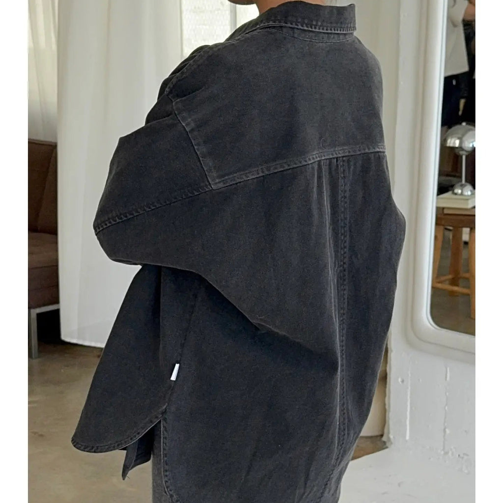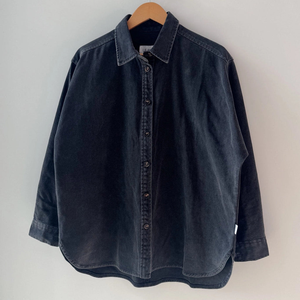 A timeless denim staple, perfect for layering or wearing on its own. Designed with the same relaxed fit as the Owen Shirt, but crafted in a slightly heavier, more durable denim fabric. Finished with an oversized silhouette, functional button front, contrast stitching, and a classic rounded hem. Please note: Colors - The washing process gives each garment unique character. Please allow for slight color and fit variation for each garment as is the beauty of garment wash. Pieces with the same color name may not match exactly.