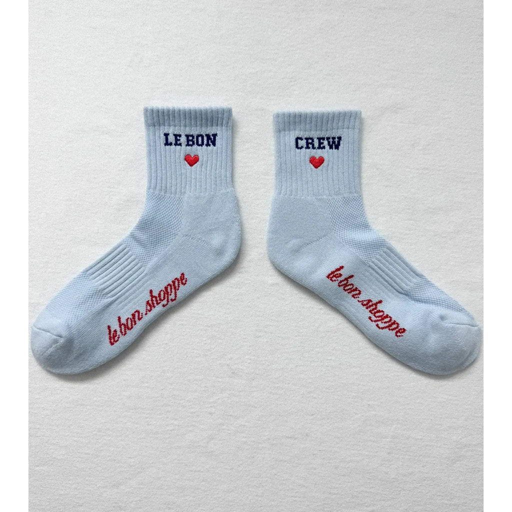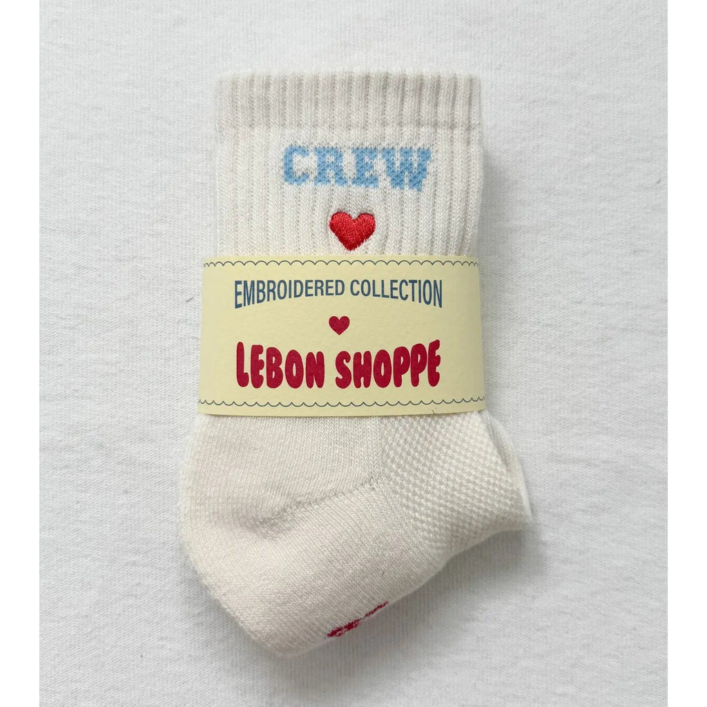 Embroidered Crew Socks - Sky Blue & Vanilla