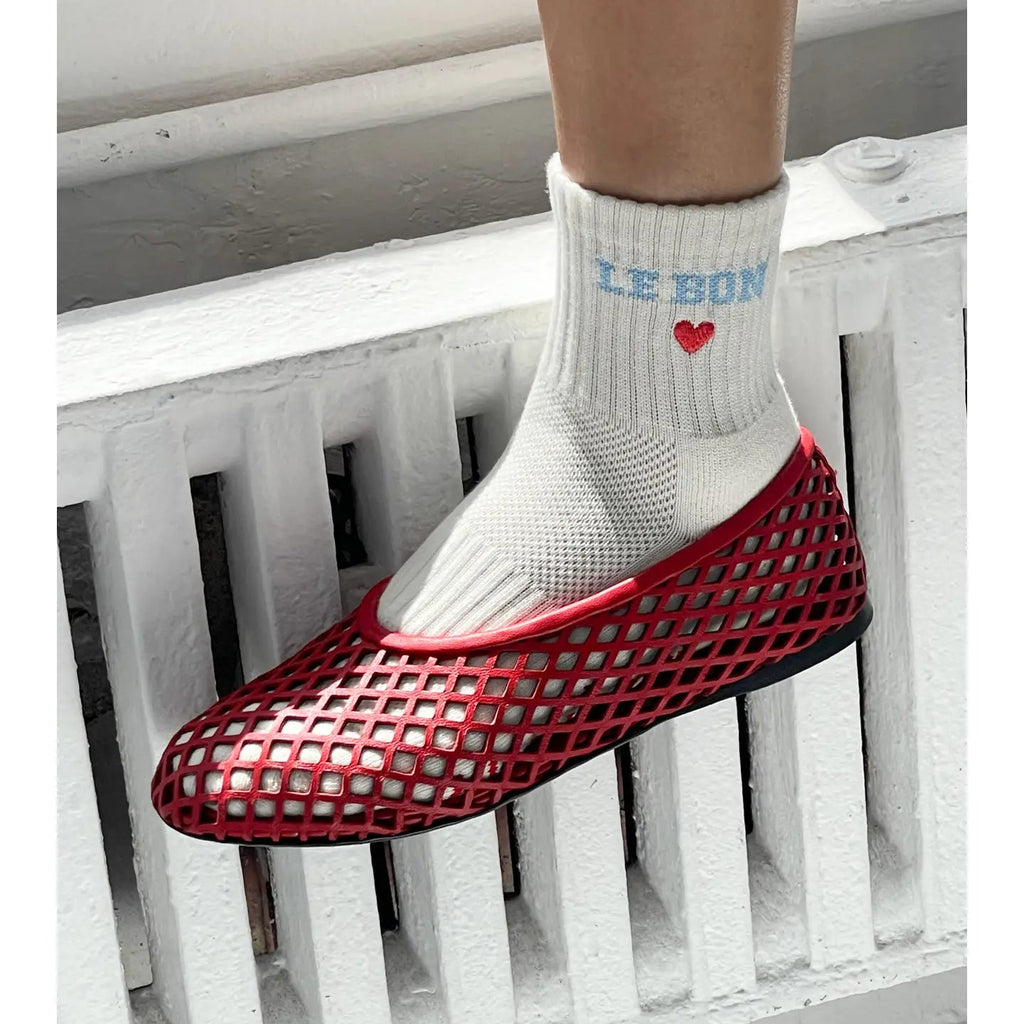 Why We Made This? A love letter to your feet. Inspired by our best-selling Girlfriend Socks, this elevated pair brings the same cozy comfort you adore with an added touch of charm. A tiny embroidered heart on the side adds just the right amount of sweetness. Made with the same ultra-soft fabric and timeless fit you already know and love.