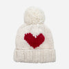 This cute beanie is Cream with a Red heart and a fold-over brim.  - Designed in Salt Lake City - Made from 100% hand-knit acrylic - Hand wash and lay flat to dry