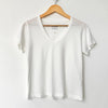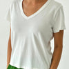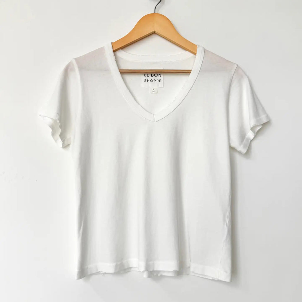 Your favorite V-neck tee, reimagined with a shorter length that hits just right. Thoughtful distressing along the neckline and sleeves adds a worn-in feel, while baby-soft organic cotton makes it perfect for that effortless tuck.