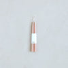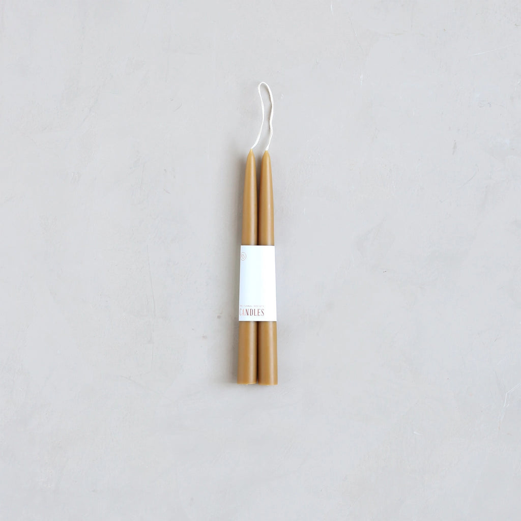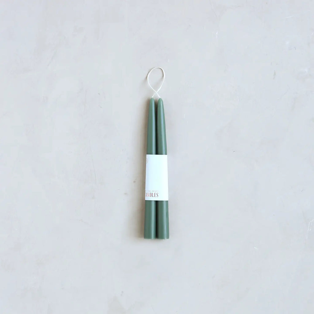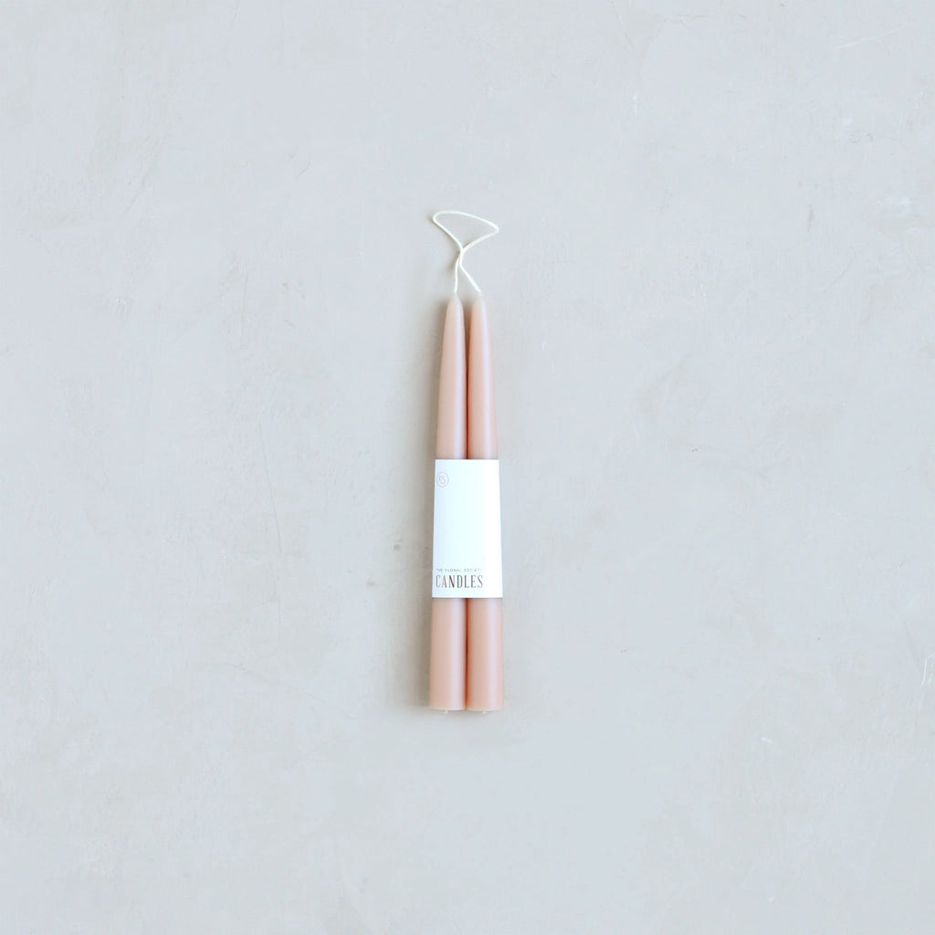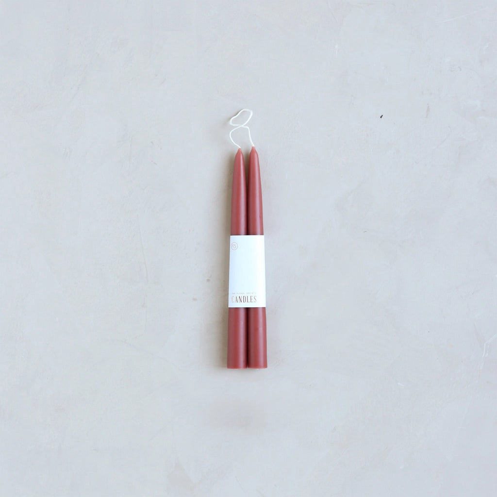 Our colors are inspired by nature's natural hues and meant to be burned as a daily ritual or to commemorate a special occasion. Each candle is dipped 35 times for a superior depth of color, and pairs are joined by a braided cotton wick for the cleanest burn. Crafted of a high grade paraffin, our tapers are made in the United States and are designed to burn drip-free at a rate of approximately 1 hour per inch. Our dipped taper candles have a 7/8” standard base. Please note due to the dipped nature of our candles, there may be a slight variance in the width of the base. To accommodate such variances, we suggest using our Copper Candle Sharpener and Candle Helper. Subtle variations in wax depth and color opacity may occur. Pro tip: To avoid dripping burn away from all drafts and trim your wicks!