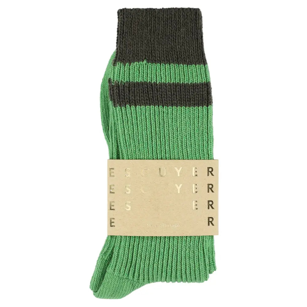 Our Cashmere Socks are comfortable and super soft, perfect to keep you warm during the winter. Escuyer socks are manufactured at a great family-owned factory in Portugal. 10% Cashmere, 38% Virgin Wool, 28% Viscose, 22% Recycled Polyamid, 2% Elasthane. Global Recycled Standard certification (logo stands on the labels). Made in Portugal