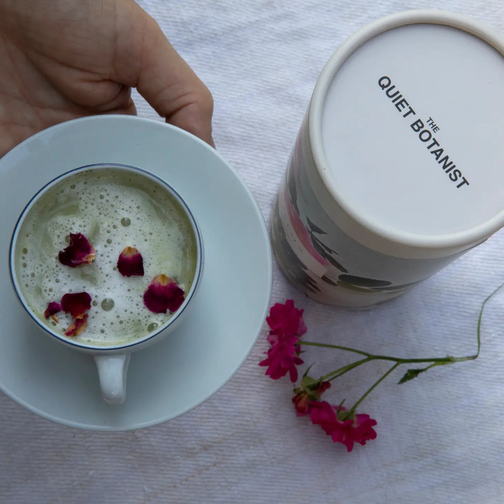 A canister filled with 3 oz of delicate, organic rose petals, carefully dried to preserve their natural beauty, color, and aroma. Ideal for decorating cakes, pastries, and confections, these petals add an elegant botanical finish to any baking creation. They are equally lovely sprinkled over foamed matcha or a morning latte, bringing a subtle sense of ritual, wellness, and visual delight to everyday moments. These rose petals also make a stunning garnish for cocktails, mocktails, and celebratory drinks, adding a romantic, artisanal touch. Exceptionally versatile and visually striking, they are best used as a decorative or finishing element. Not recommended for steeping as tea, as the petals are too delicate and may produce a bitter flavor when infused. Now presented in a recycled board canister featuring a delicate botanical print, each vessel is slightly larger than our previous metal tins. Designed to be dent-free and easy to ship, the new canisters ensure your teas arrive beautifully every time.